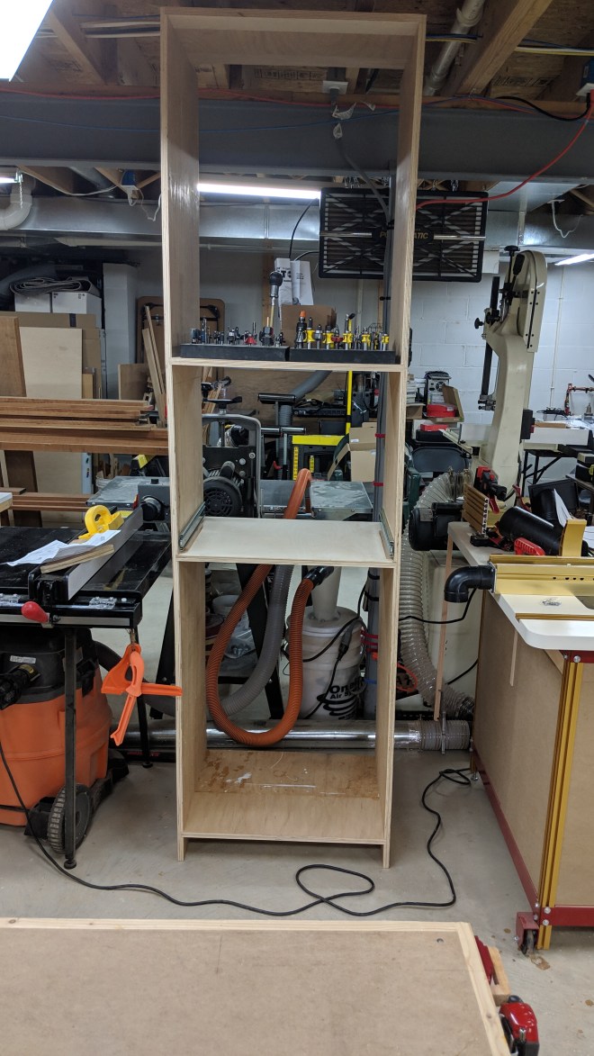 It’s some badly warped Lowe’s plywood. Still, it’s a cabinet I need in that spot, so it will do. It will have some drawers and probably a cabinet at the top. Posted on 2019-04-212019-05-01 by comm150937317322 Share this: Click to share on X (Opens in new window) X Click to share on Facebook (Opens in new window) Facebook Like Loading... Related