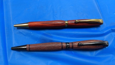 My wife and I took a beginner pen turning class at Woodcraft. Mine is Redheart and hers is Purple heart. Pretty good for a first try. Posted on 2019-07-14 by comm150937317322 Share this: Click to share on X (Opens in new window) X Click to share on Facebook (Opens in new window) Facebook Like Loading... Related