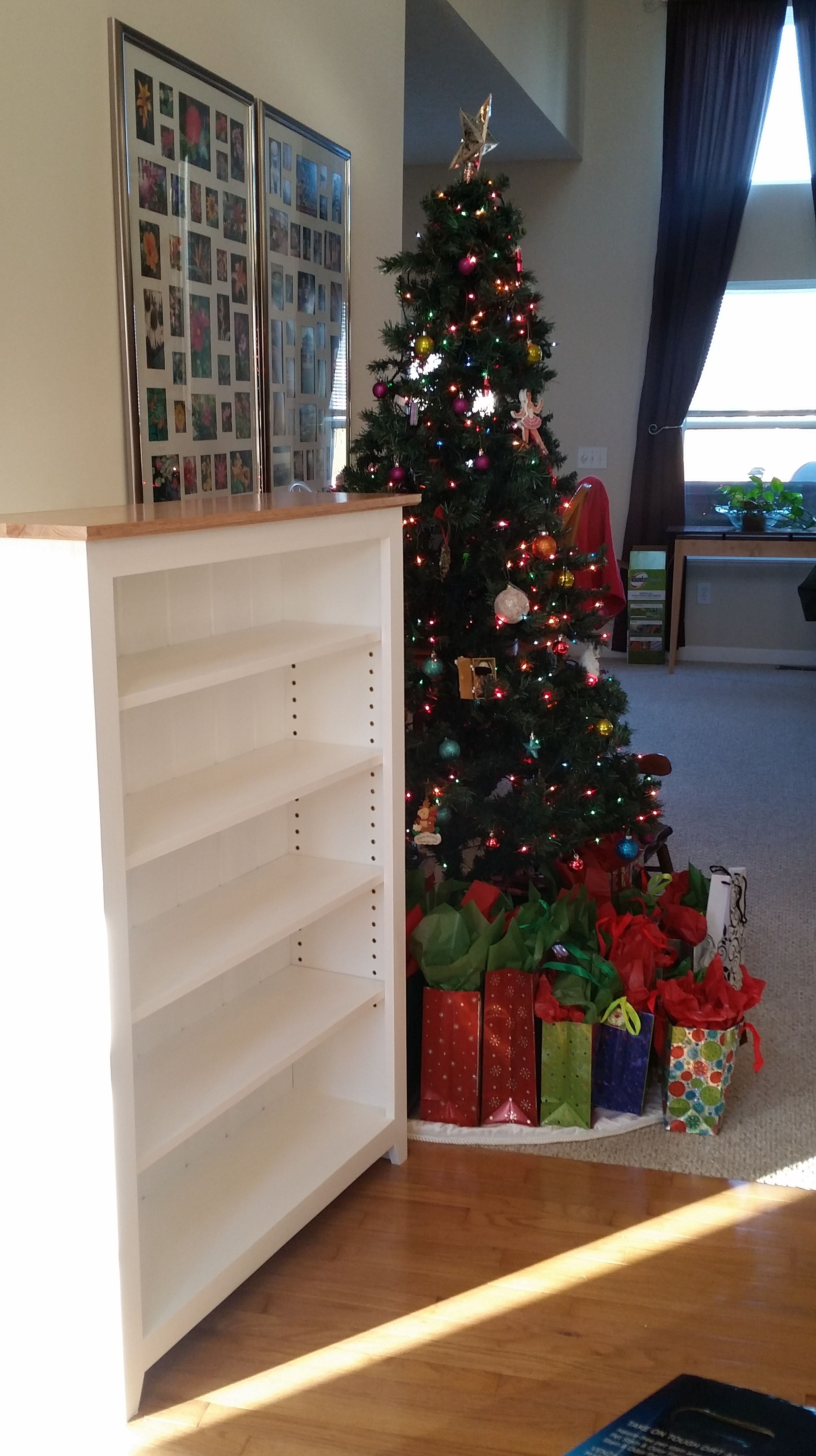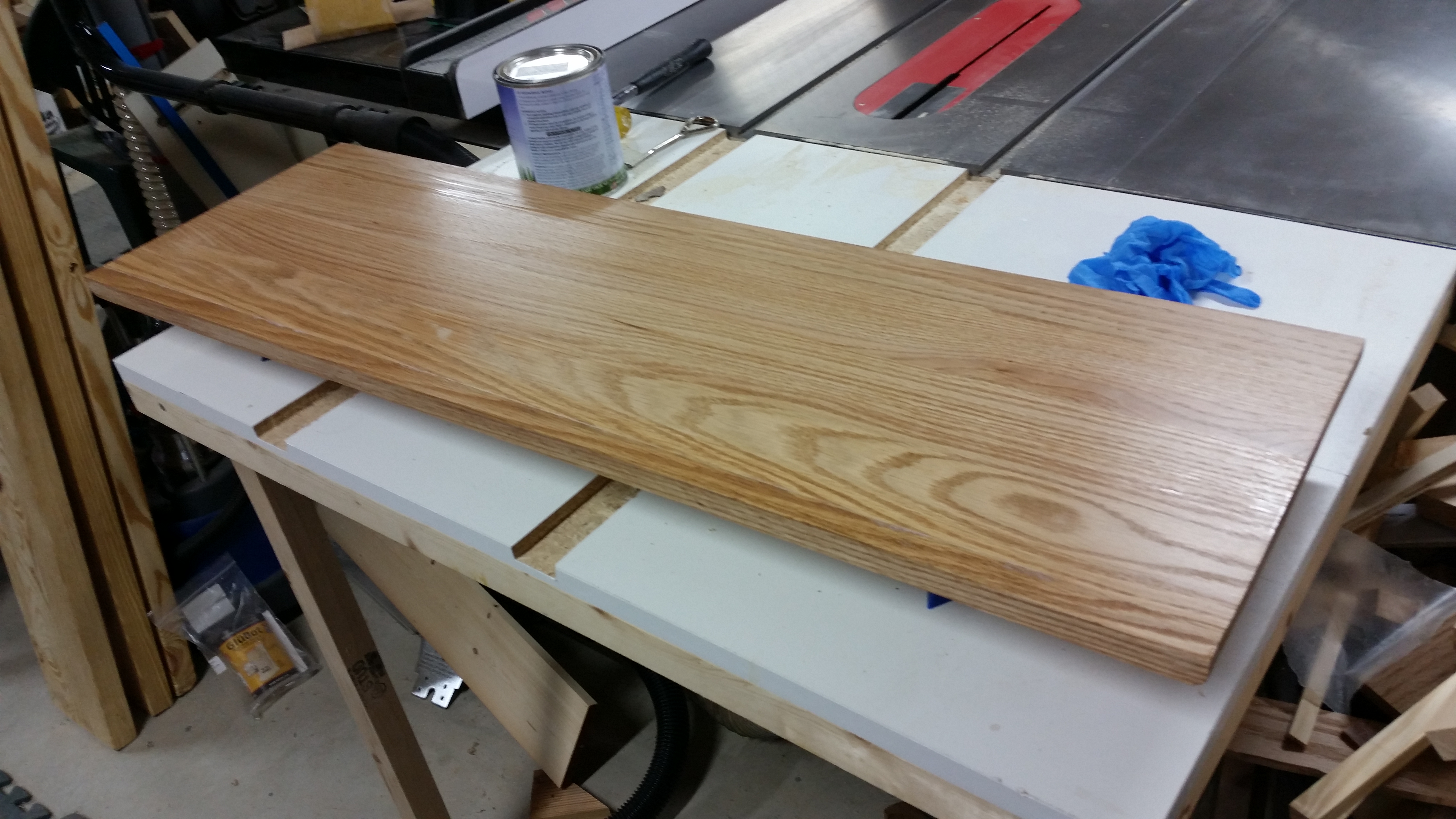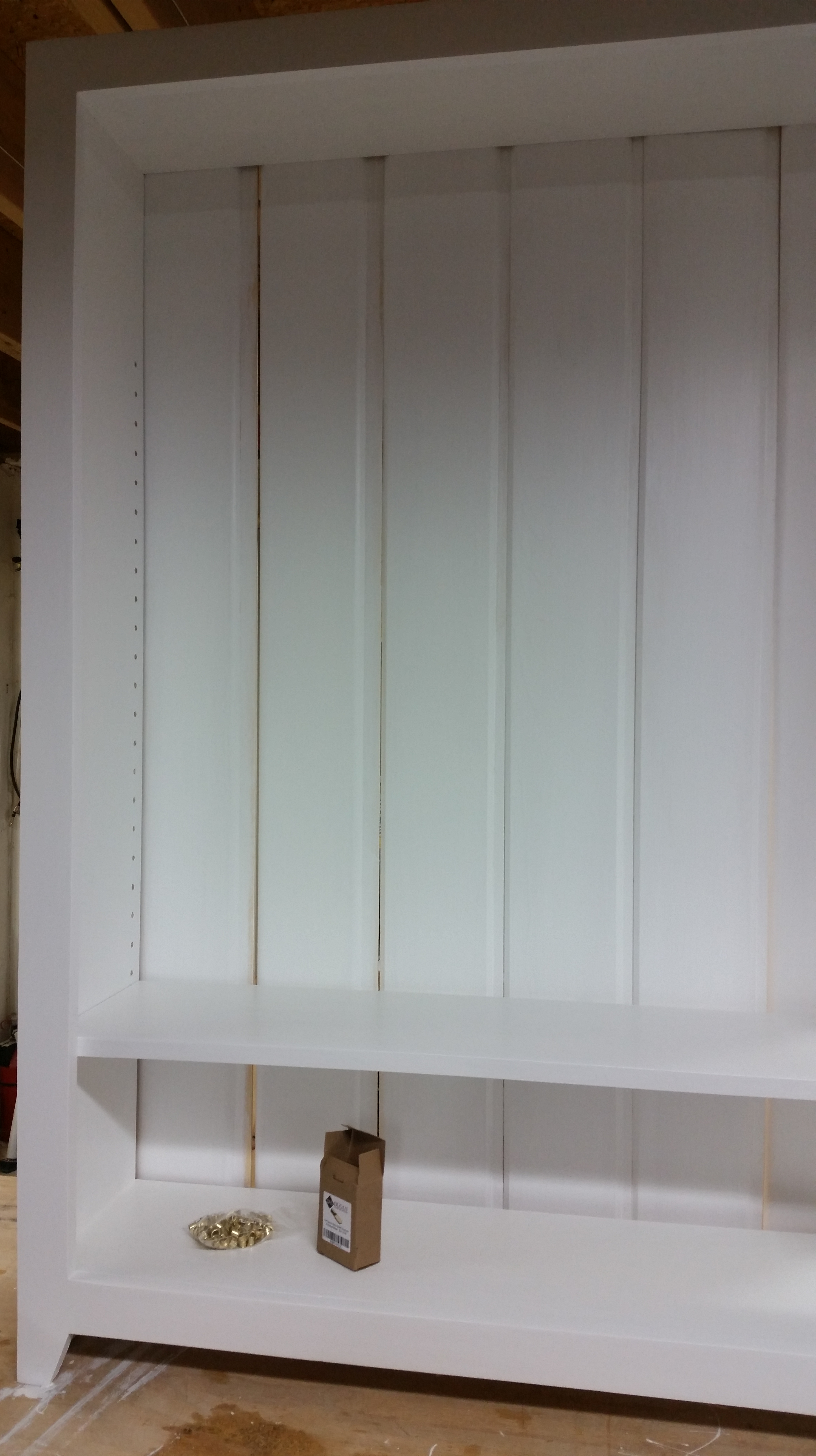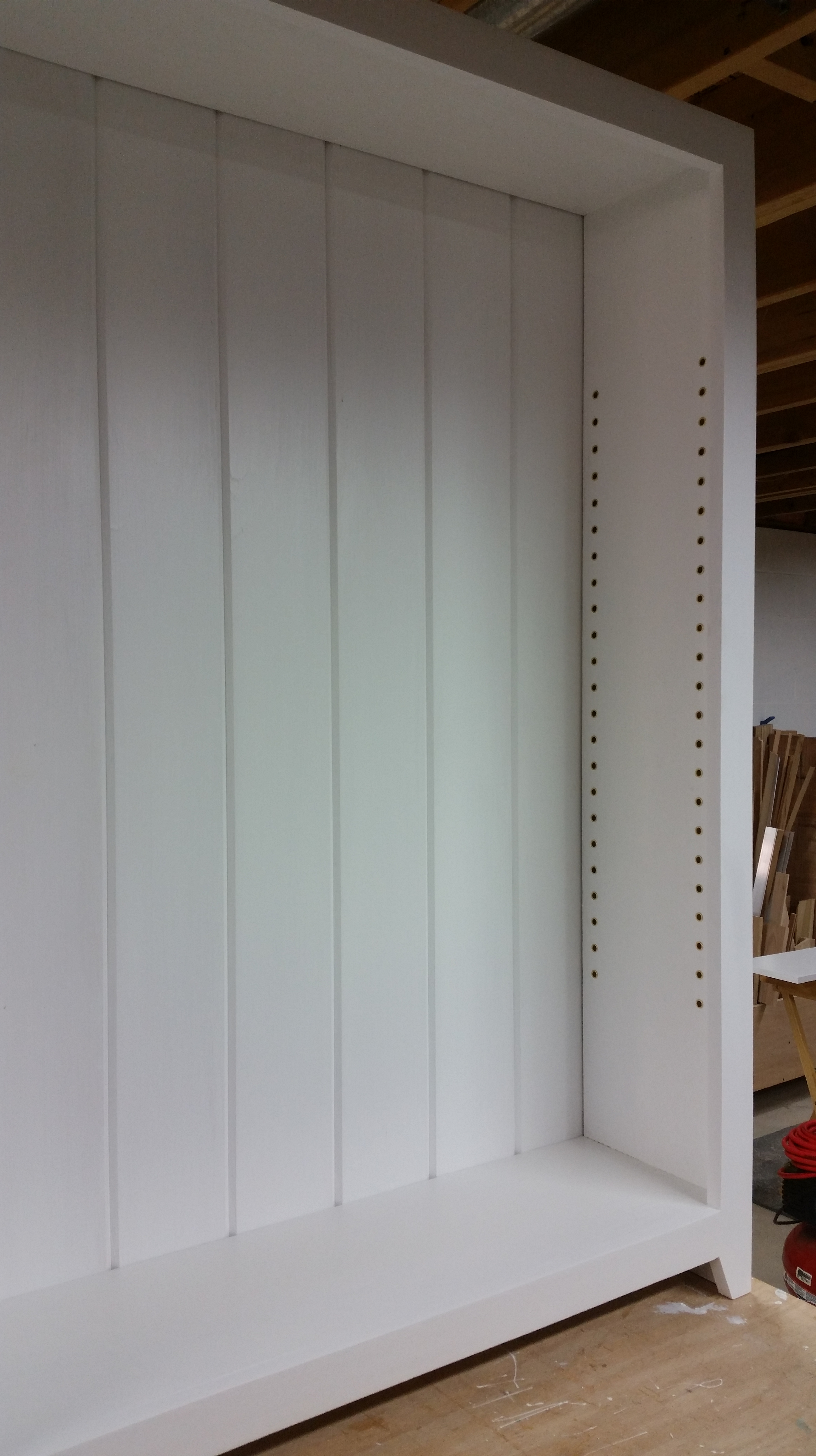 This a bookcase I made for my niece in December of 2015. It is made out of Popular with and Oak top and pine beadboard for the back. The body is painted with white latex paint and the top is clear water-based acrylic.