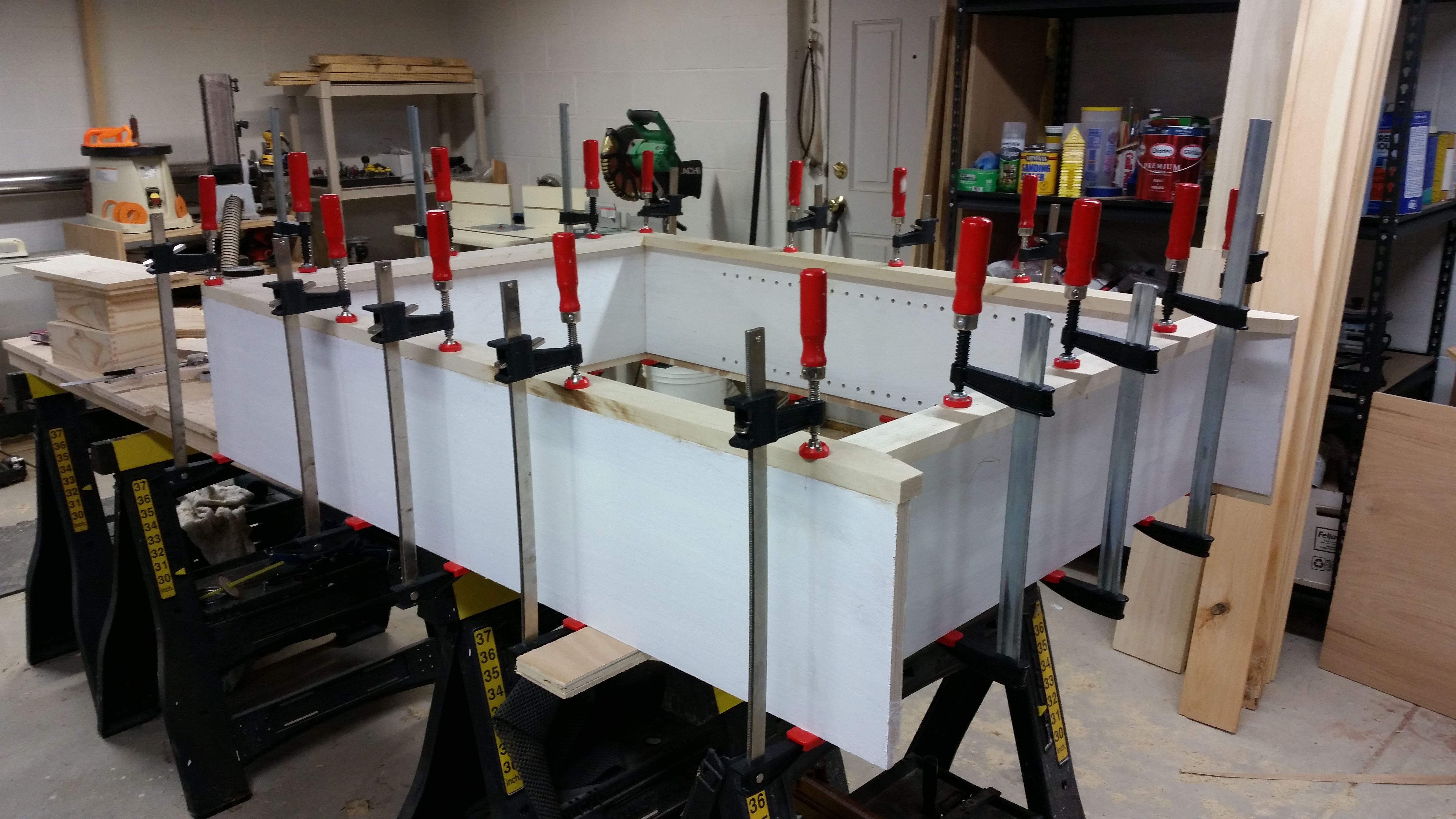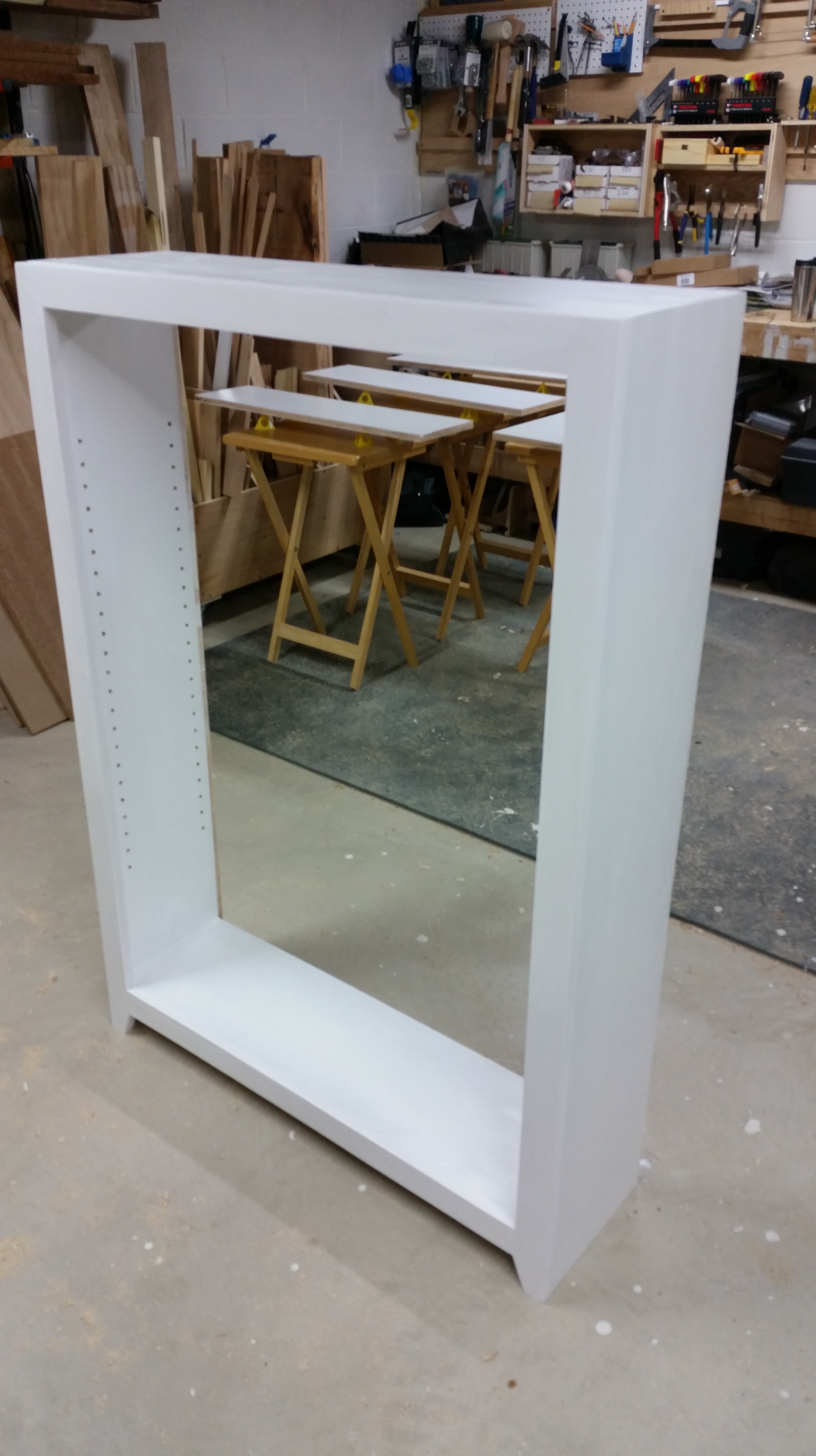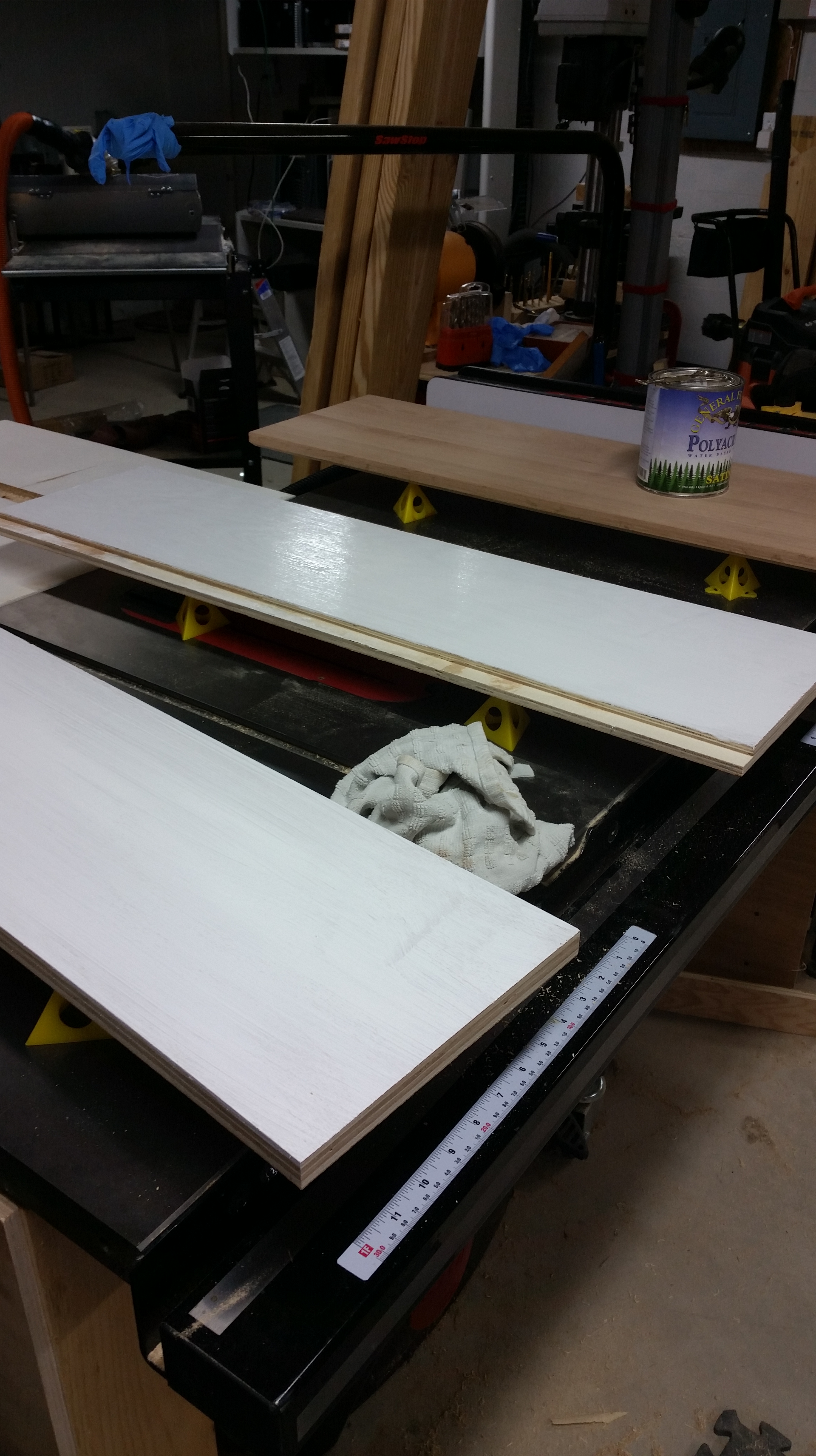 This a bookcase I made for my niece in December of 2015. It is made out of Popular with and Oak top and pine beadboard for the back. The body is painted with white latex paint and the top is clear water-based acrylic.