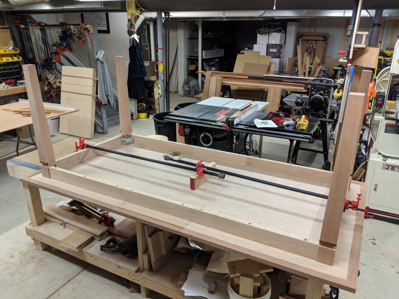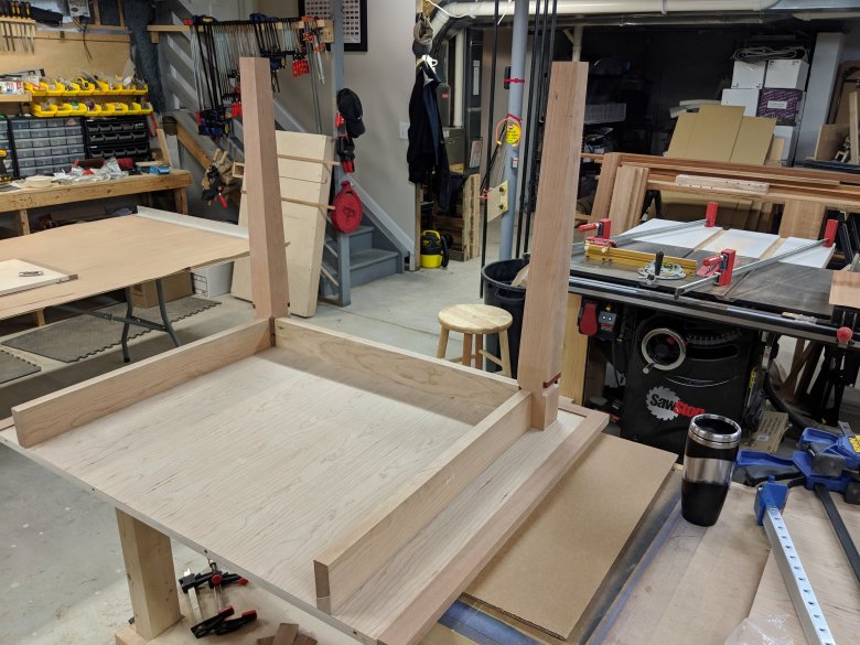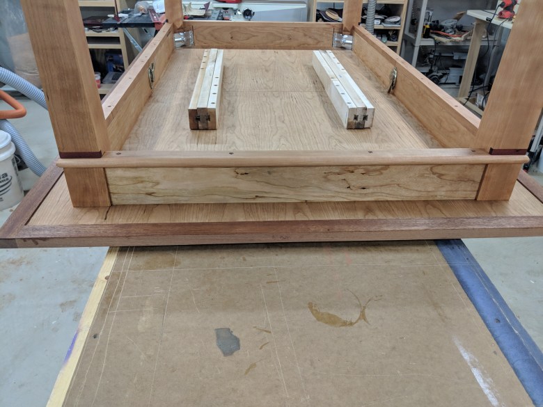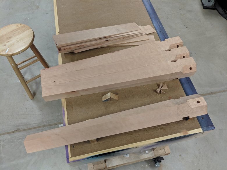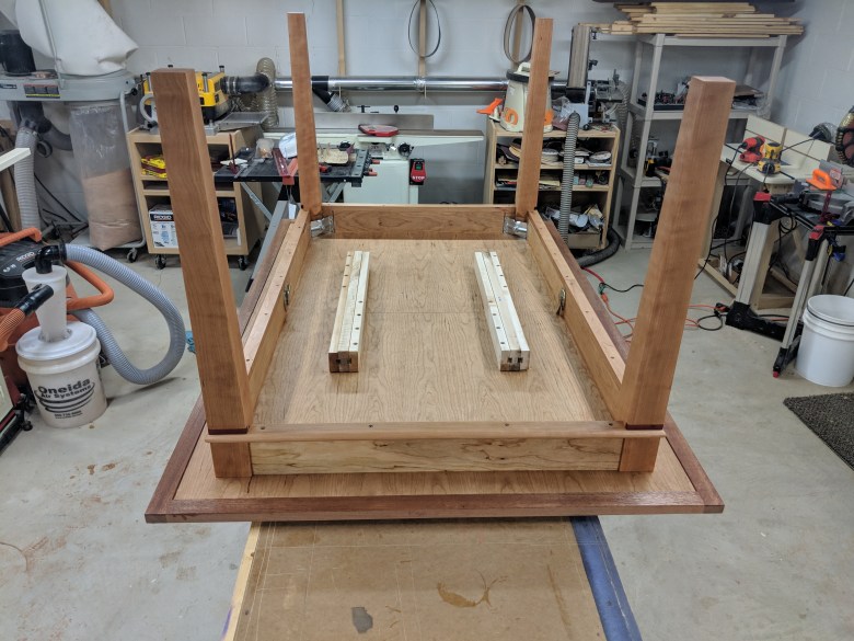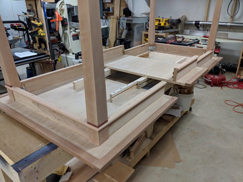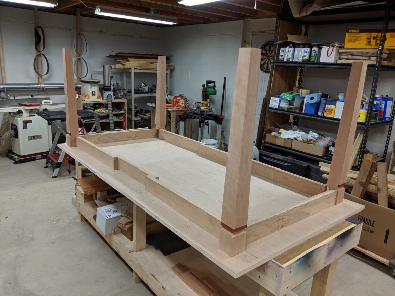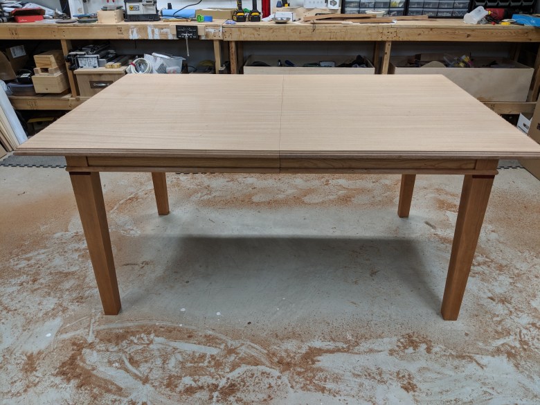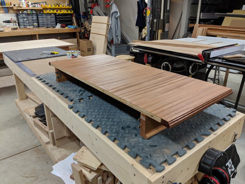 Here is my Sapele top and Cherry base dining table. It has one leaf so it can seat six or either people. The strip around the top of the legs is Bloodwood. I finished it on November 11, 2018. Now I just have to make chairs for it. This was adapted from plans in Woodsmith magazine.