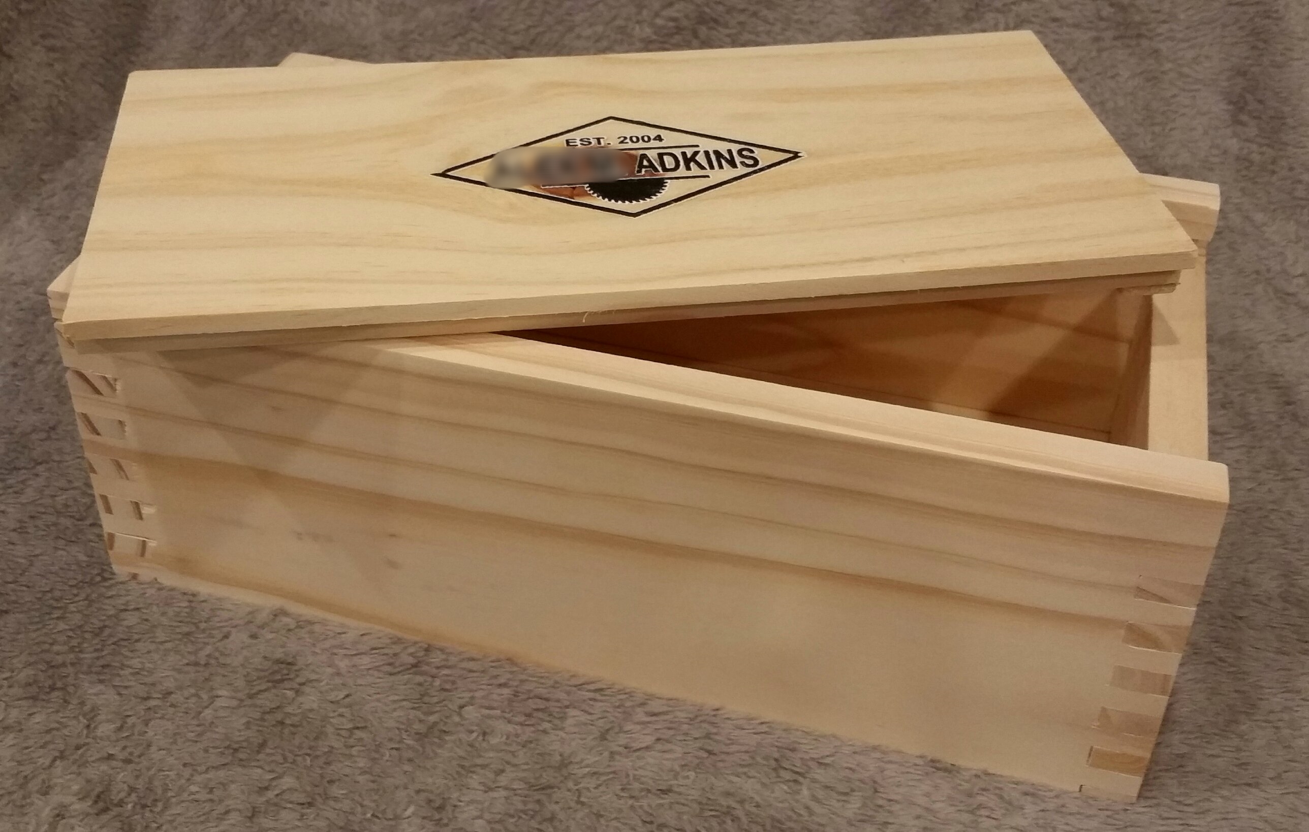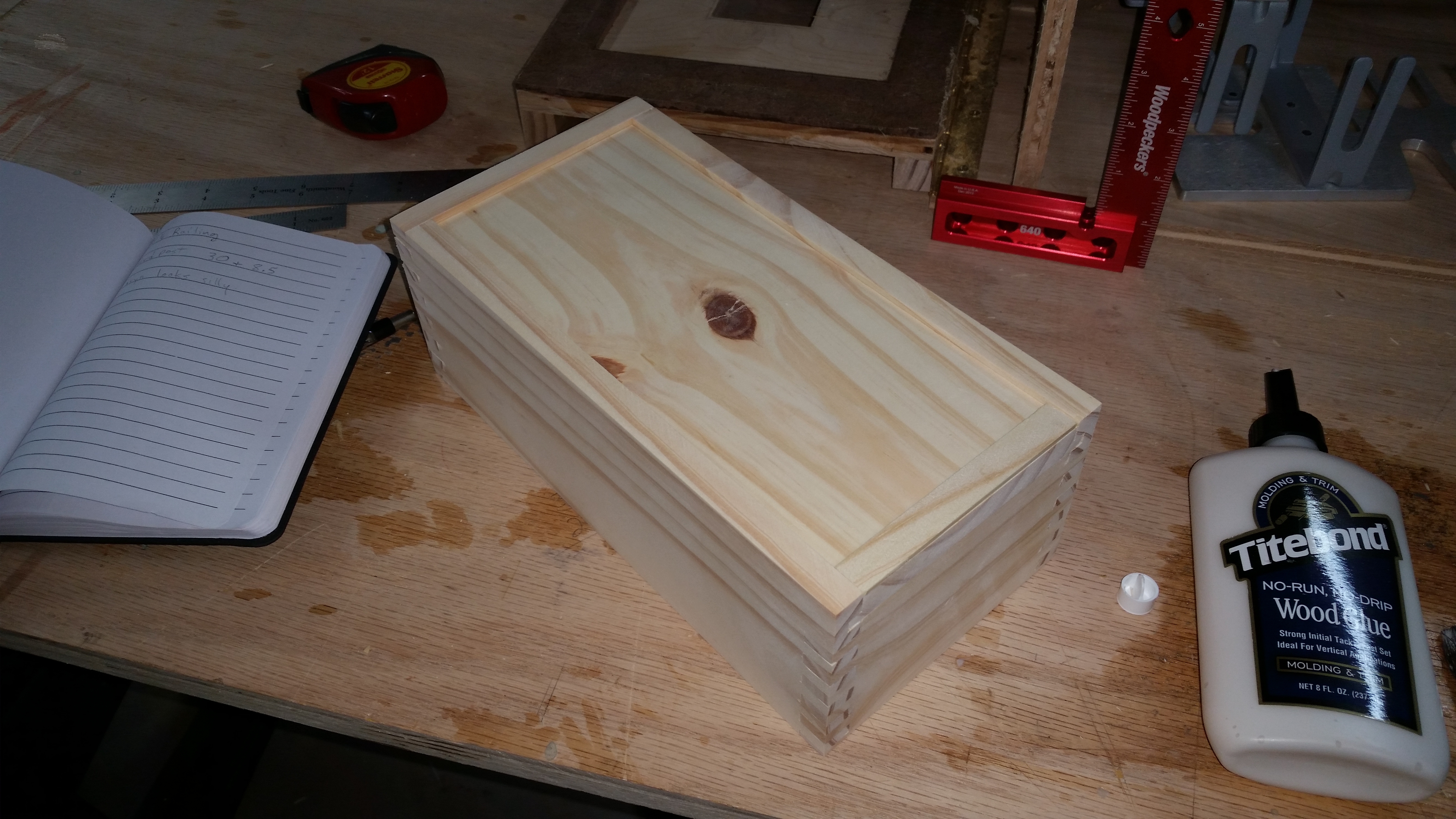 This box was made as a challenge from /r/woodworking on Reddit in October of 2015. The idea was to make a box in one hour, or as much as you could. I was able to make the entire box in under one hour, without finish. I added my logo to the underside of the box after the one hour mark. The wood was reclaimed SPF from pallets.
