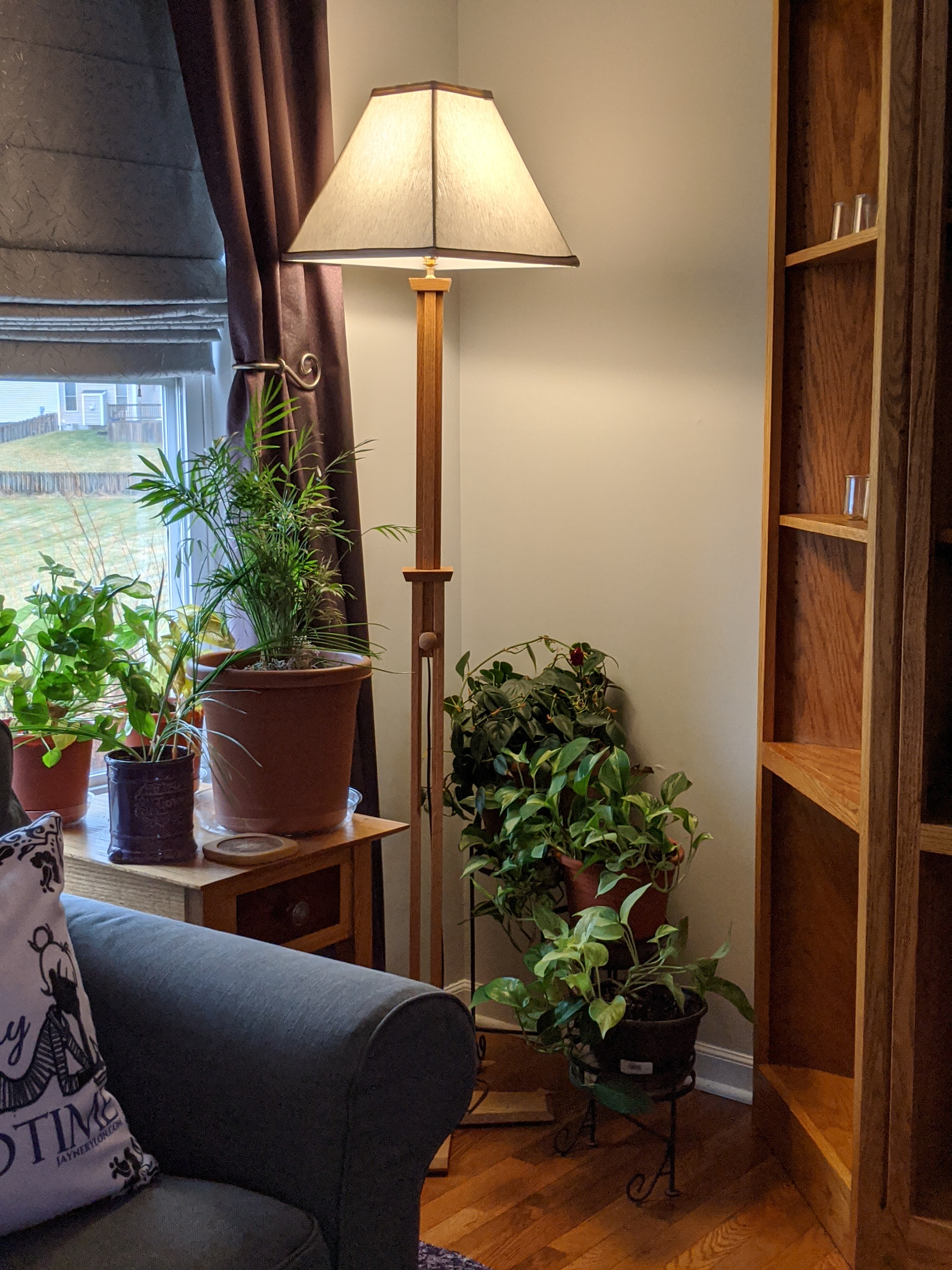 Pair of Oak floor lamps.