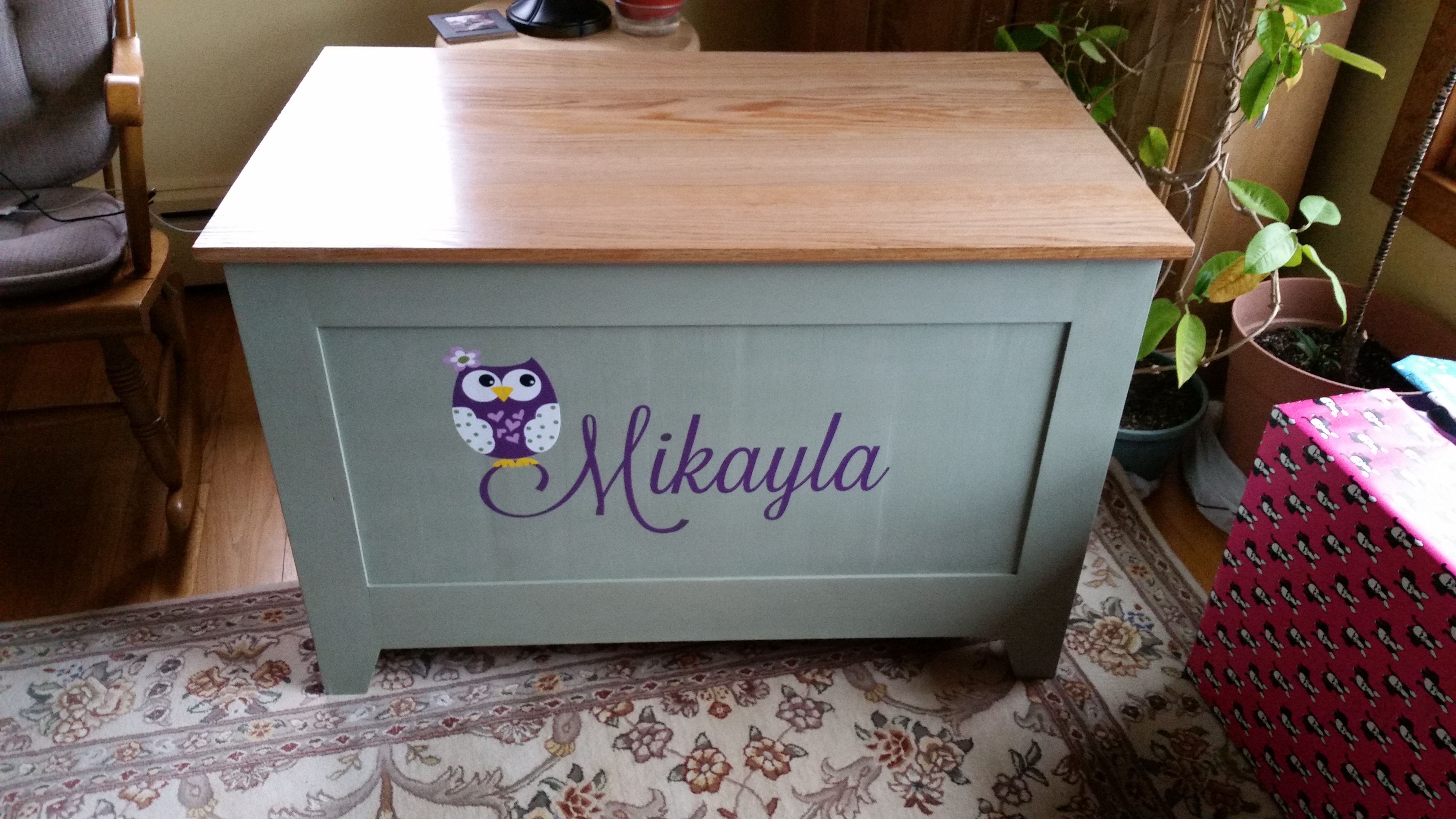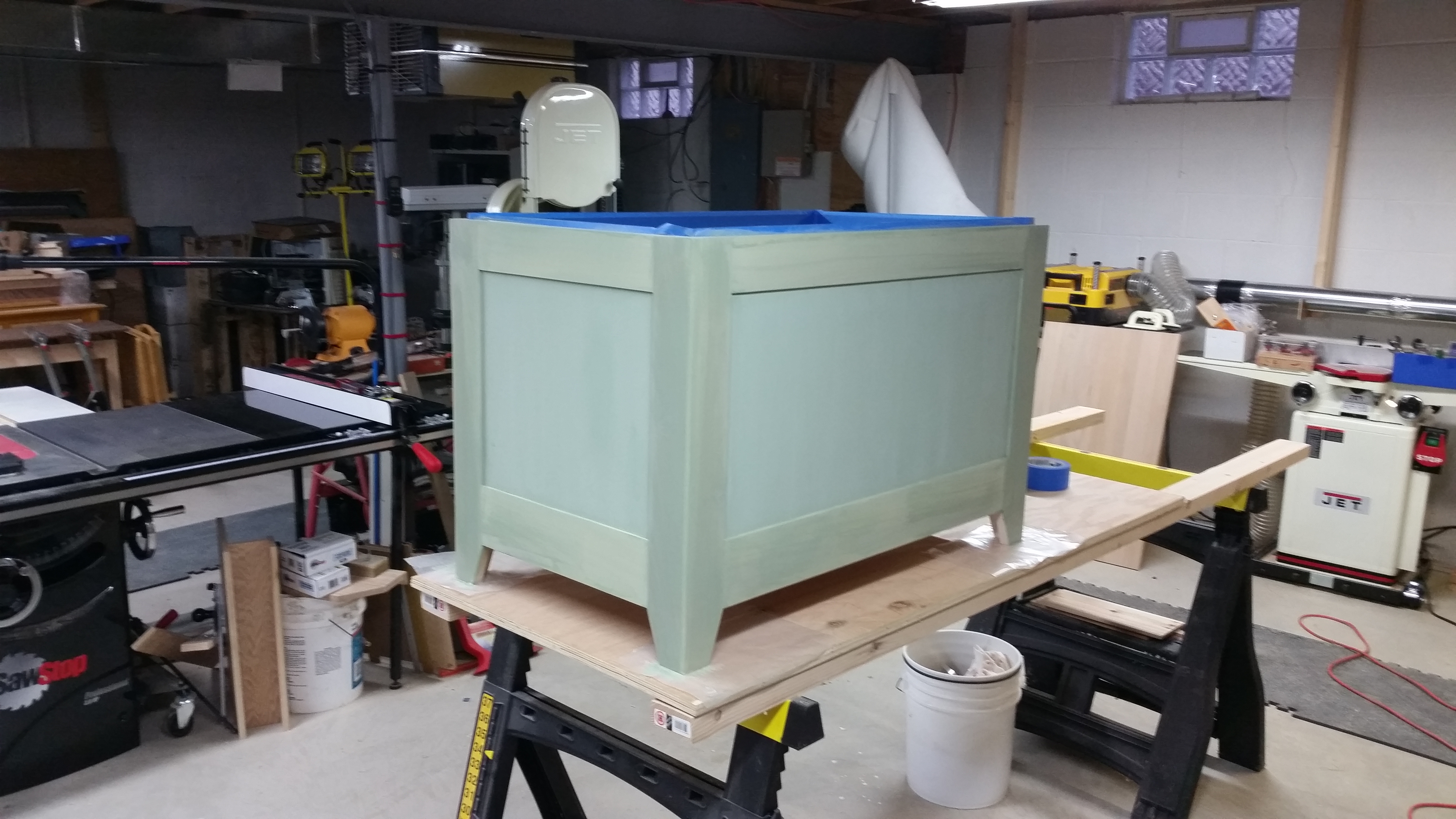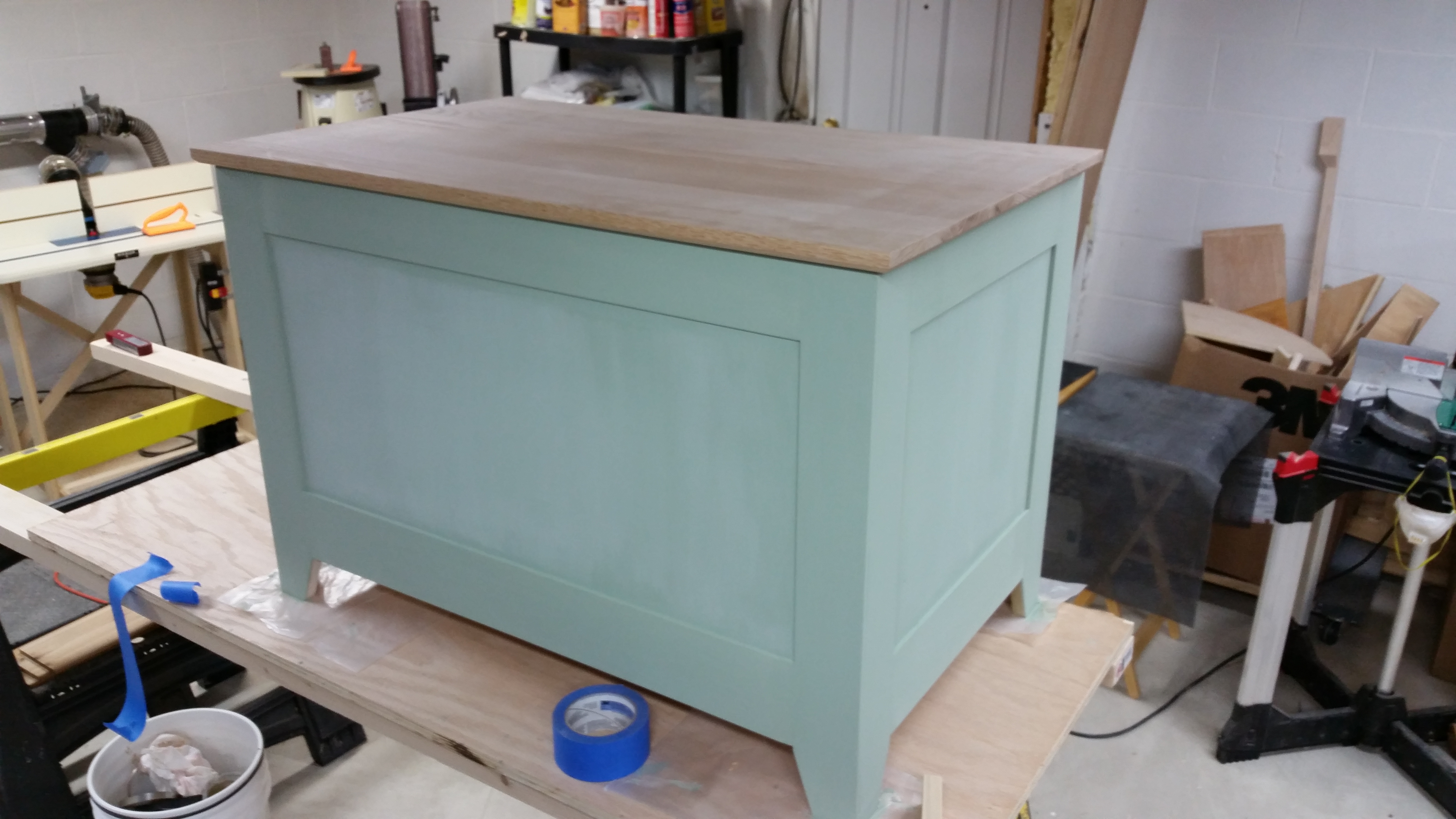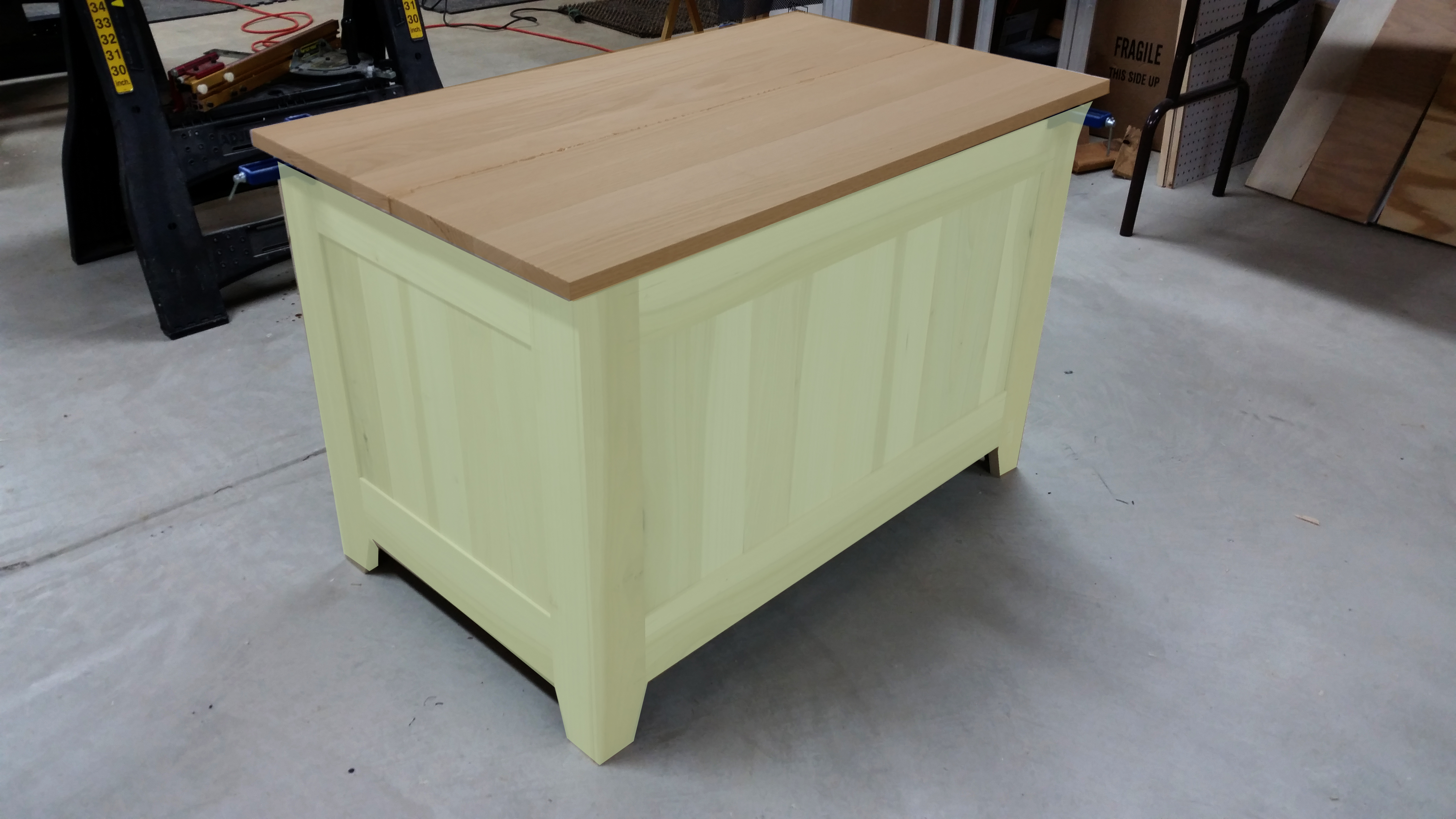This is a toy chest I built for my niece in December of 2014. It’s made out of Poplar with an Oak top. I used milk paint for the body and clear water-based acrylic for the top.