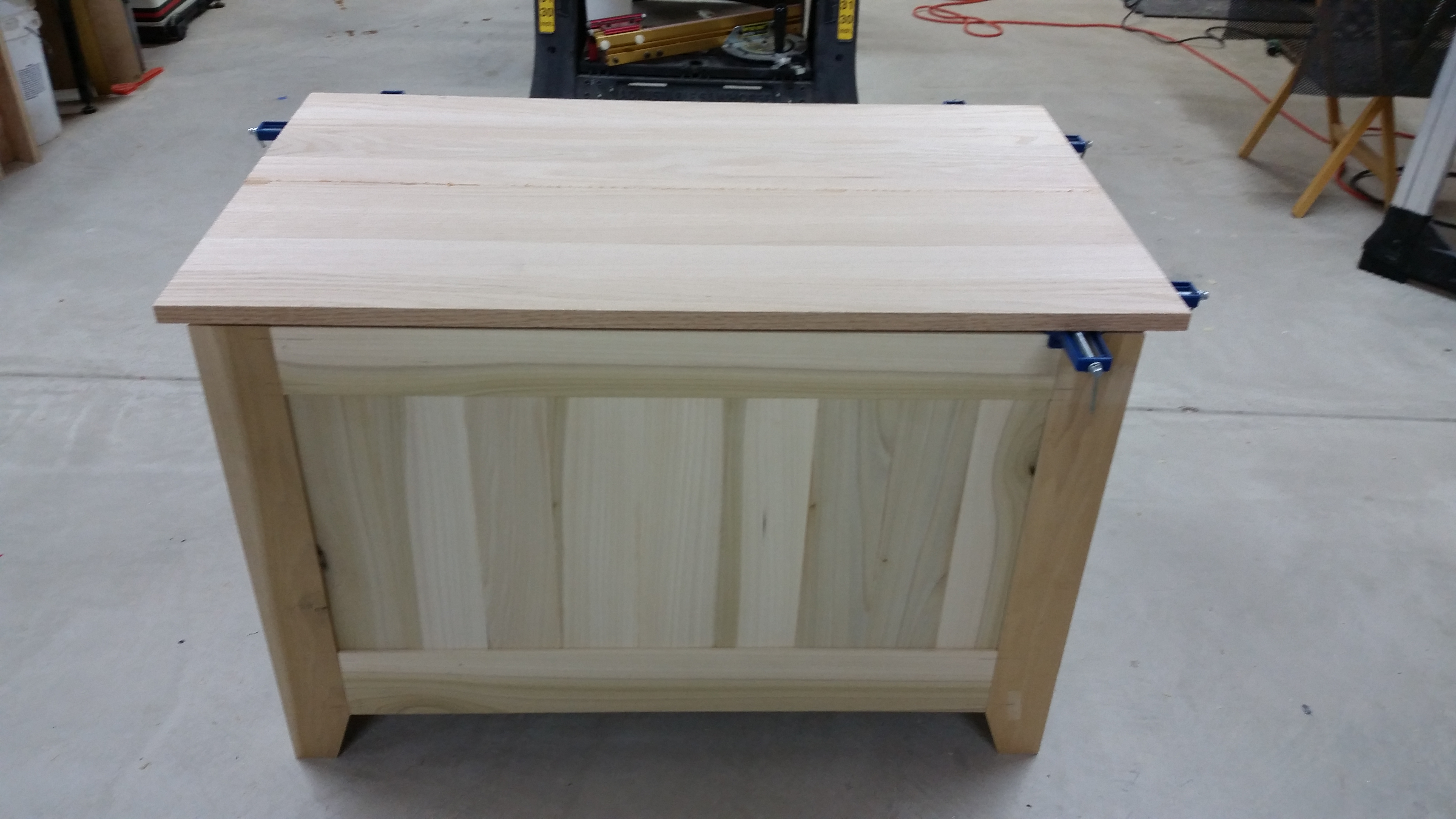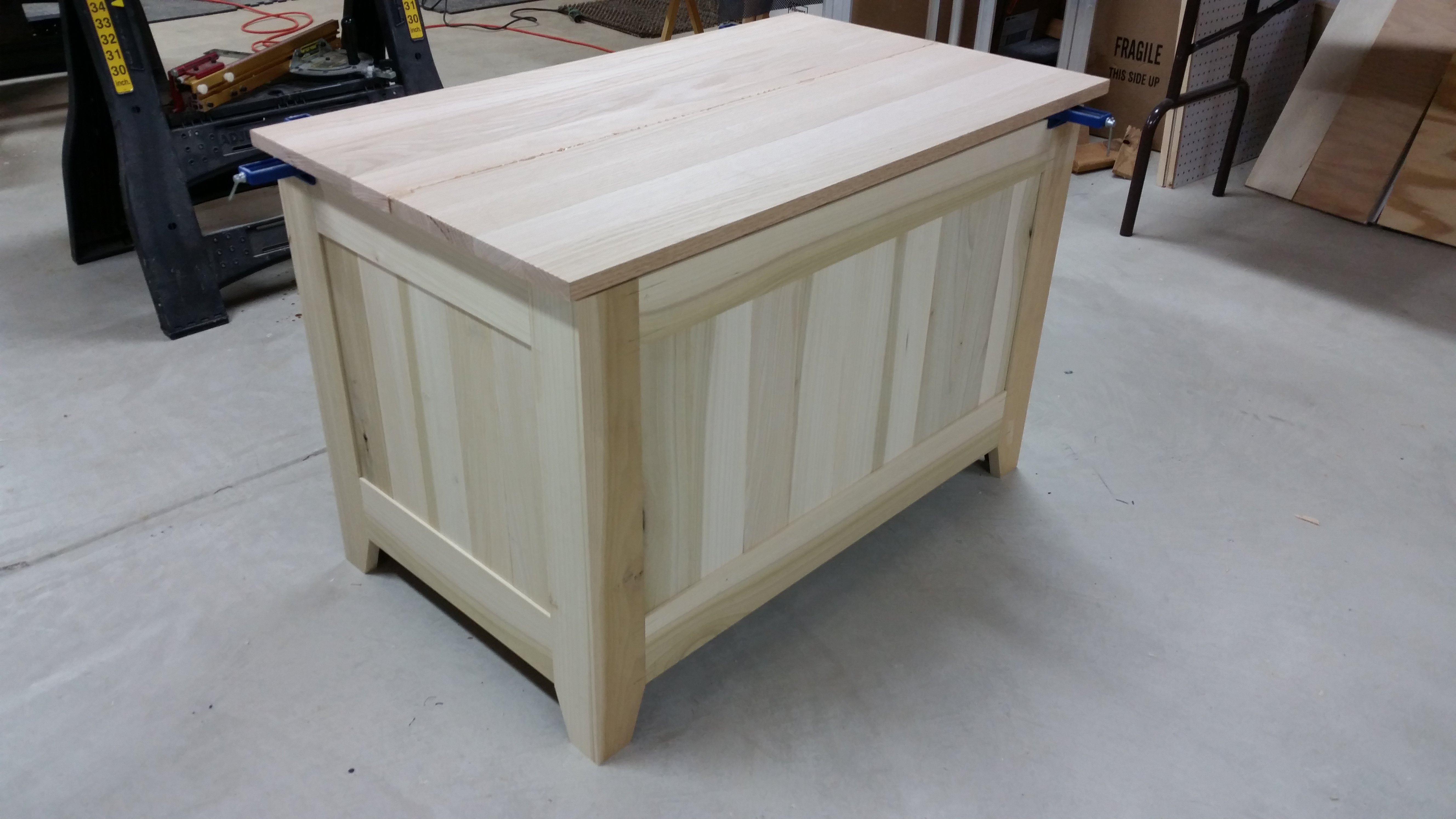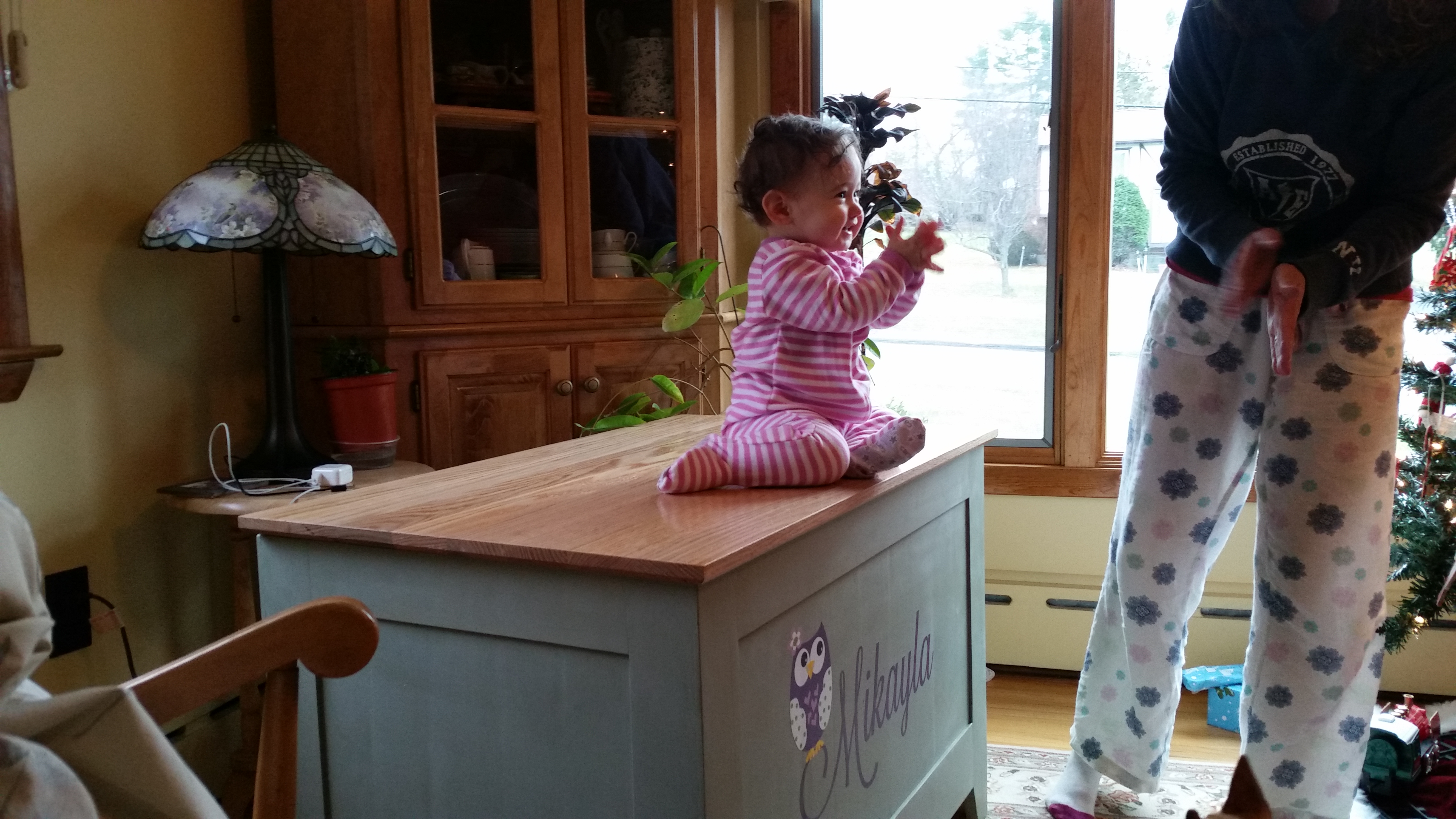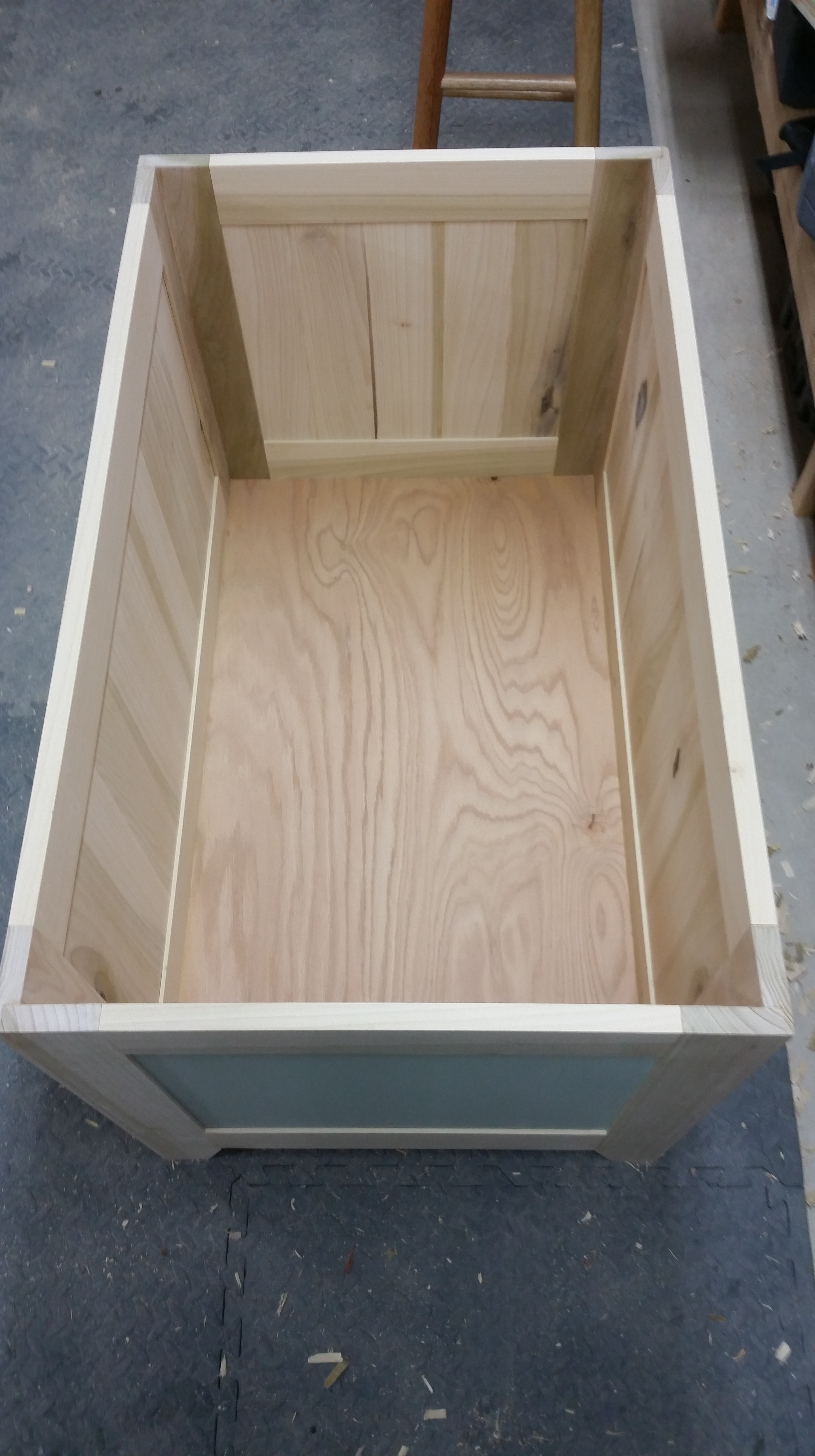 This is a toy chest I built for my niece in December of 2014. It’s made out of Poplar with an Oak top. I used milk paint for the body and clear water-based acrylic for the top.